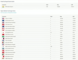 अमेरिकी डलर एकको खरिददर १४६ रुपैयाँ ४६ पैसा र बिक्रीदर १४७ रुपैयाँ ०६ पैसा कायम गरिएको छ। युरोपियन युरो एकको खरिददर १७४ रुपैयाँ १३ पैसा र बिक्रीदर १७४ रुपैयाँ ८५ पैसा तोकिएको छ भने युके पाउण्ड स्ट्रलिङ एकको खरिददर २०० रुपैयाँ ७६ पैसा र बिक्रीदर २०१ रुपैयाँ ५८ पैसा निर्धारण गरिएको छ। स्वीस फ्रयाङ्क एकको खरिददर १८८ रुपैयाँ ९९ पैसा र बिक्रीदर १८९ रुपैयाँ ७७ पैसा रहेको छ।