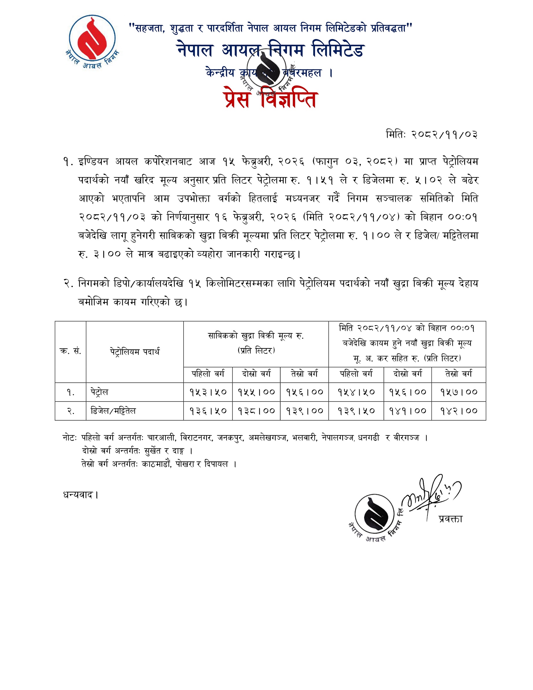 पेट्रोलियम पदार्थको मूल्य वृद्धि, नयाँ दर आज रातिदेखि लागू