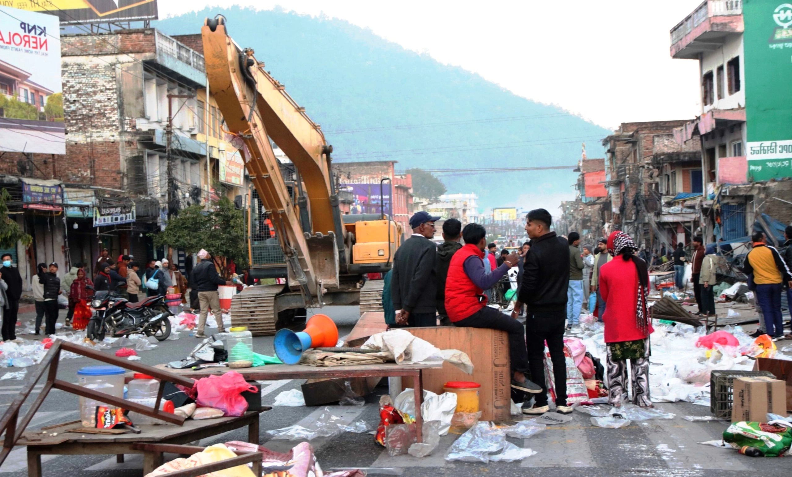 हेटौँडा मुख्य सडक विस्तार सुरु : सडक सीमाभित्रका संरचना जेसिबीमार्फत हटाइना थाले