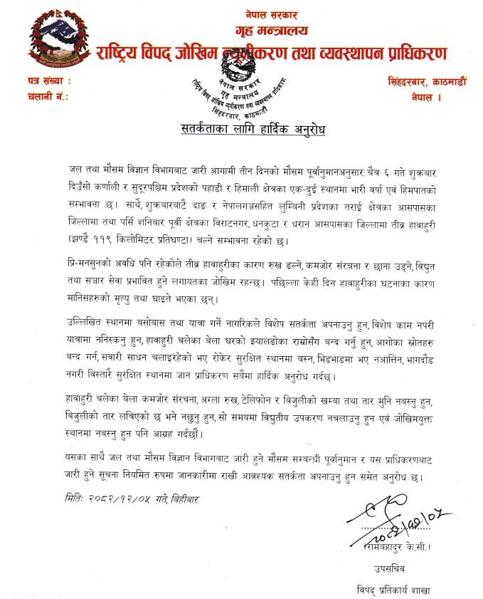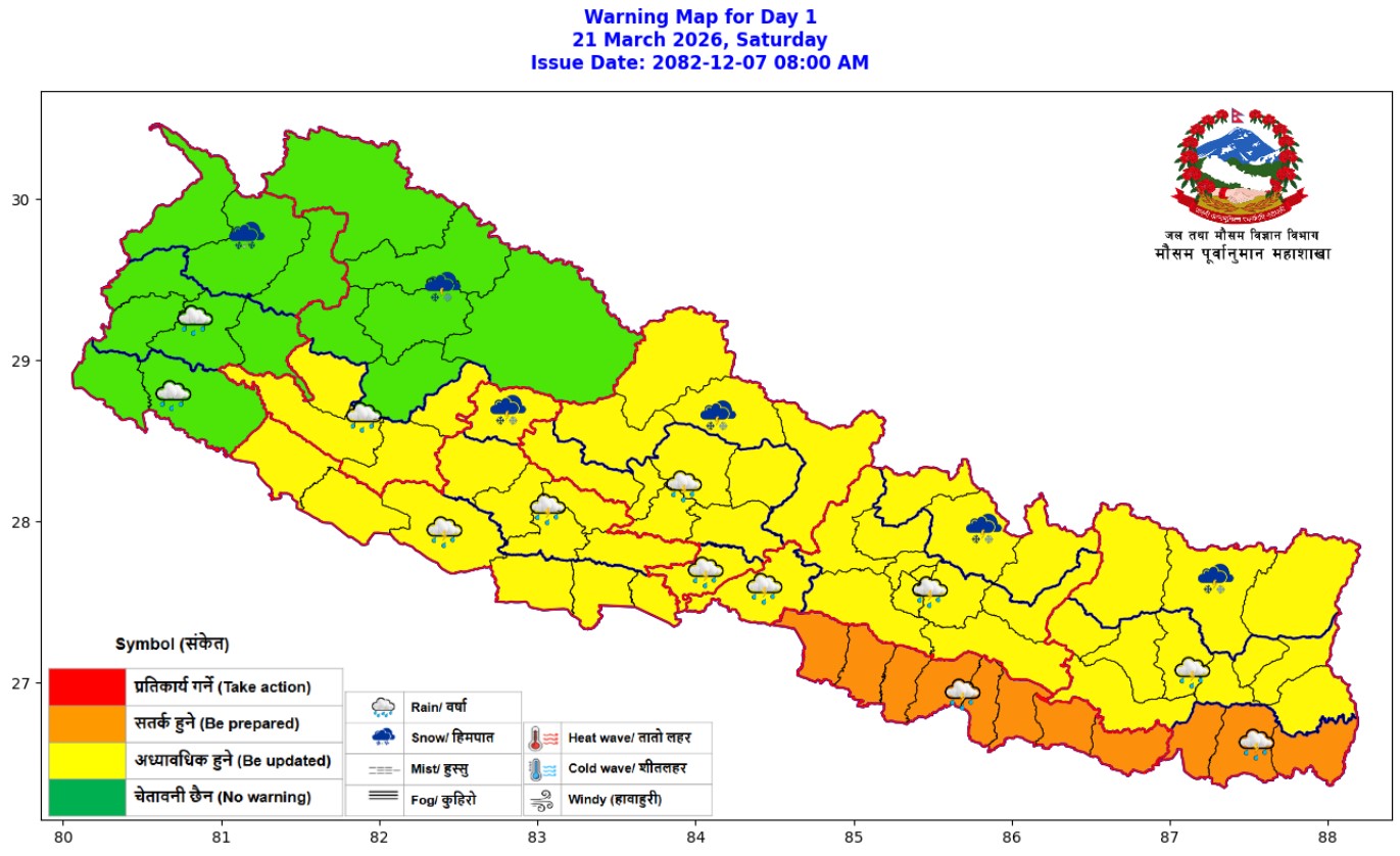 आगामी तीन दिन देशभर हावाहुरी, वर्षा र हिमपातको सम्भावना — सतर्क रहन आग्रह