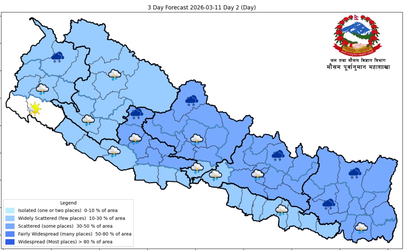 केही स्थानमा चट्याङसहित वर्षाको सम्भावना, तराई क्षेत्रमा तुवाँलो लाग्ने